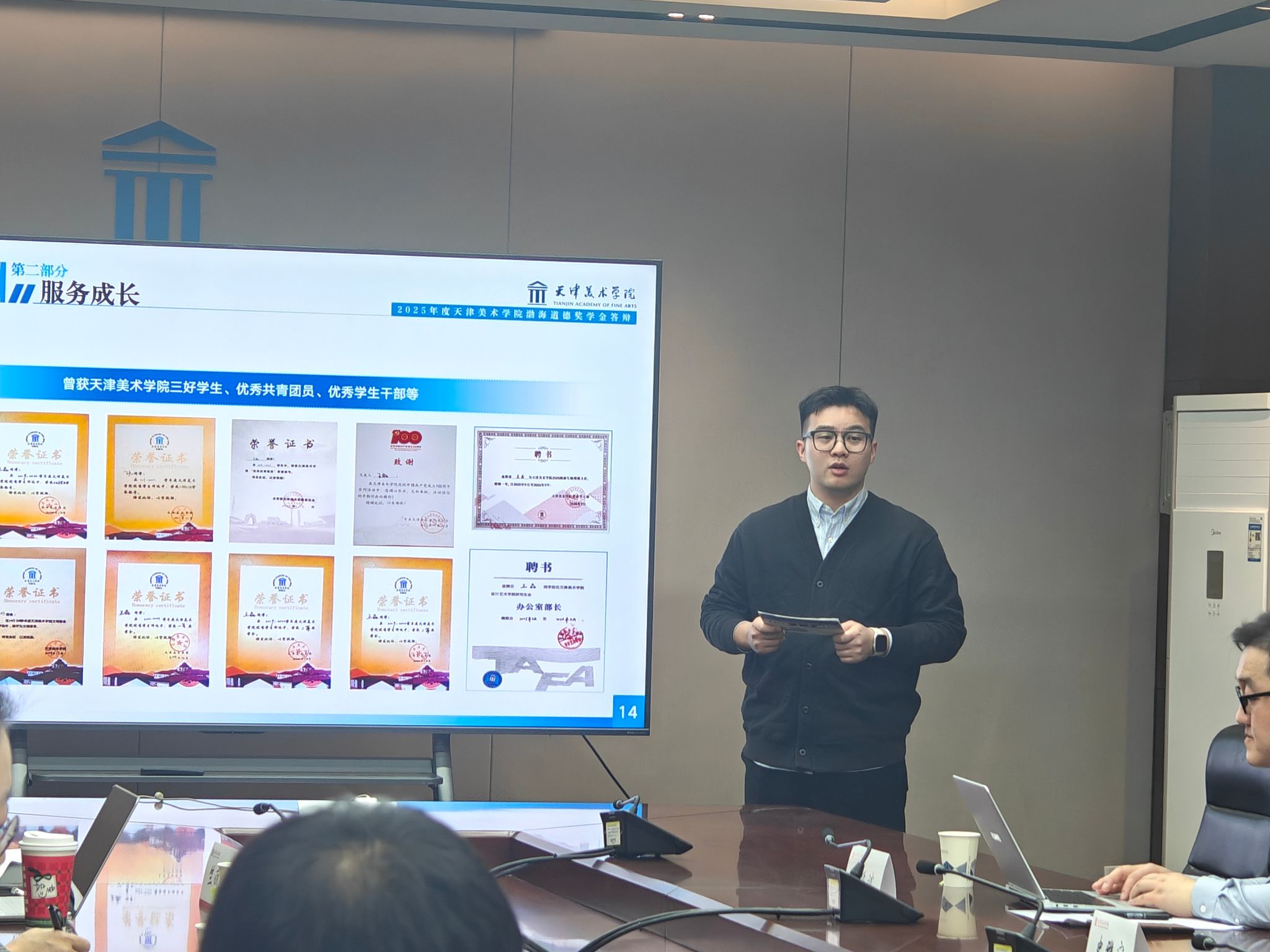12月18日上午,天津美术学院第三届渤海道德奖学金评审会在天纬路校区小会议室顺利举行。天津渤海供应链管理有限公司业务部副经理薛秀建,我校党委学工部、科研与研究生处、各学院学生工作负责人担任评委。渤海道德奖学金由天津渤海供应链管理有限公司与天津美术学院教育发展基金会联合发起,自2023年设立以来,始终以弘扬中华民族传统美德为核心,致力于深化品行兼优、综合素质卓越的复合型应用人才培养,为学子成长成才注入温暖力量。