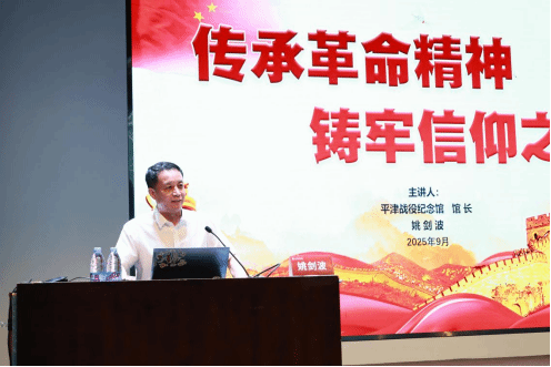 传承革命精神 铸牢信仰之魂 | 平津战役纪念馆馆长姚剑波应邀为天美军训学子进行
